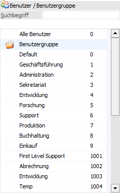 Die Auswahl in dieser Tabelle kann durch Eingabe eines Suchbegriffs eingeschränkt werden. Es kann per Eingabe sowohl nach Nummer, als auch nach der Bezeichnung gesucht werden.