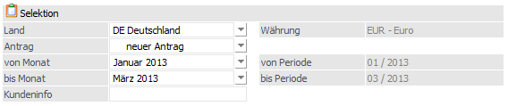Für die Auswahl des Zeitraumes sind zwei Auswahllistboxen vorhanden, in denen der von- und der bis- Monat ausgewählt werden kann.
