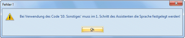 nur 1-mal der Code '10. Sonstiges' verwendet darf, steht auch das Feld für den