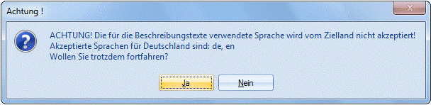 Da nicht alle Länder Dateianhänge akzeptiert, wird auch geprüft, ob dies für das Zielland der Fall ist.