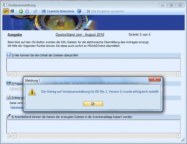 kann der Antrag auf Vorsteuererstattung erstellt werden.