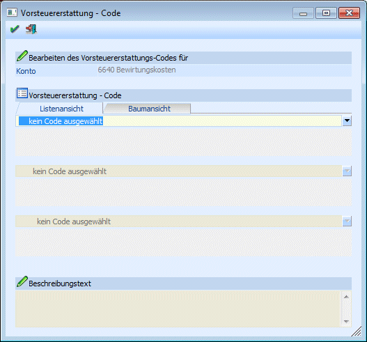 Oben im Fenster wird angezeigt, für welches Konto bzw. für welche Buchung, wenn man sich im Menüpunkt Vorsteuererstattung befindet, der Code geändert werden soll.
