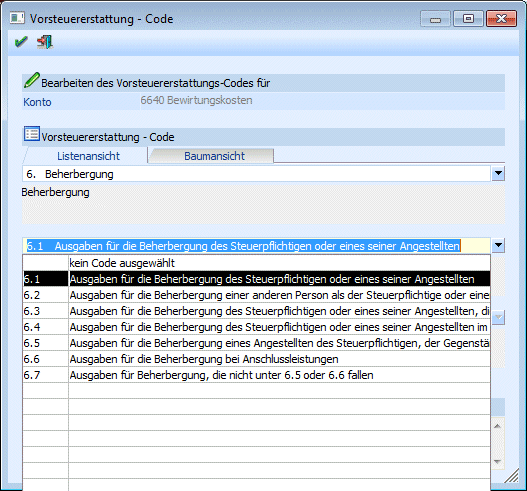 Für die Auswahl der Vorsteuererstattungs-Codes gibt es 2 Möglichkeiten:
