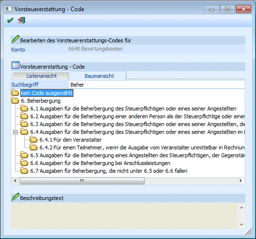 Hier werden alle Codes in einer Baumstruktur angezeigt. Mit Doppelklick kann der Code übernommen werden, sofern es keine darunterliegenden Ebenen gibt.