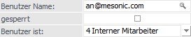 Hier wird der Benutzername eingetragen, wobei als Name die Mailadresse verwendet wird. Durch Drücken der F9-Taste kann nach allen bereits angelegten Benutzern gesucht werden.
