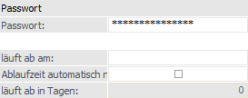 Ist diese Checkbox aktiviert, dann kann in dem Feld "läuft ab in Tagen" die Anzahl der Tage eingegeben werden, nach denen das Passwort jeweils geändert werden muss.