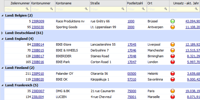 Es wird in einer Debitorenliste nach der vorhandenen Spalte "Land" gruppiert.