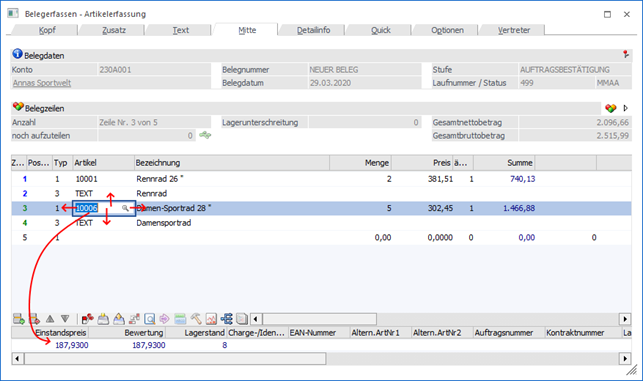 Das Bewegen zwischen den einzelnen Eingabefeldern oder Programmfenstern in der WinLine ist sehr einfach. Zum einen kann immer die Maus genutzt werden, zum anderen stehen viele Hilfreiche Tastaturbefehle zur Verfügung.