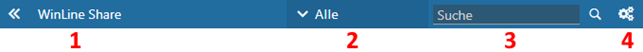 Die Kopfleiste dient in erster Linie zum Ausführen der Suche. Zusätzlich kann über diese die Einstellungen geöffnet und die Ordnerübersicht zu- und aufgeklappt werden.