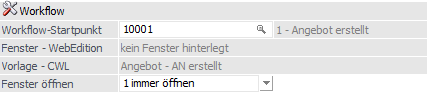 Hier wird angezeigt, welches (WEB-CTK-)Fenster zugeordnet wurde. Dieser Eintrag wird für die Darstellung der CRM-Maske in der WEBEdition, bezogen auf den gewählten "Workflow-Startpunkt", verwendet.