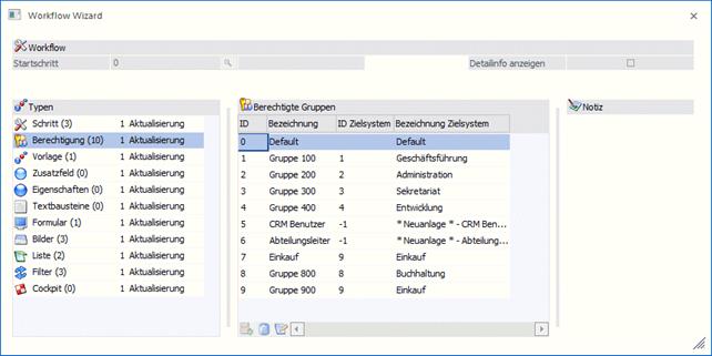 Die im Zuge des Imports angelegten Objekte wie Vorlagen, Listen, Filter, Cockpit erhalten jeweils die Objektberechtigung: Benutzer der den Import durchführt = (5) Ersteller; alle weiteren Benutzer = (2) bearbeiten für jenen Mandanten in dem der Import stattfindet.