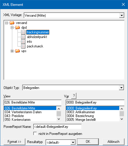 aus einem XML-Element gedruckt werden soll, dass für Belegzeilen erfasst wurde,