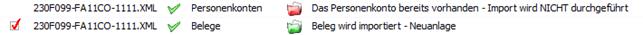 Im Falle, dass aus einer XML-Datei z.B. ein Konto importiert werden soll und aus der gleichen XML-Datei ein Beleg, so kann eine Datei mehrfach in der Tabelle angezeigt werden.