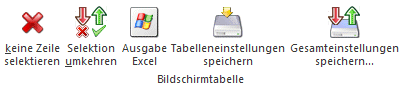 Im Gegensatz zu "Tabelleneinstellungen speichern" können mit "Gesamteinstellungen speichern" mehrere Tabellenaufbauten gespeichert und nach Wunsch geladen werden. Zusätzlich werden Sonderfunktionen der Tabelle (z.B. "Spalte gruppieren") ebenfalls bei der Speicherung bedacht.
