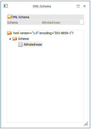 Wurde in einer XML-Erweiterung (z.B. Personenkonto oder Beleg) der Einfügen-Button gedrückt, öffnet sich dieses Fenster und zeigt die "aktuelle Version" des Schematas an.