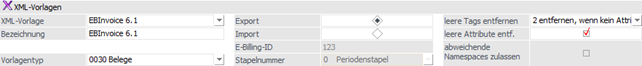 Einstellung, ob die XML-Vorlage für den Import bzw. Export verwendet werden soll. Die Option "Import" ist für alle Vorlagetypen möglich; Export jedoch nur für den Vorlagetyp "Belege".