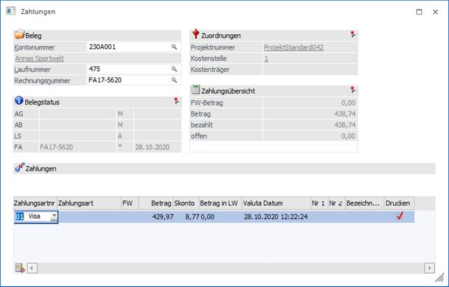 …können Zahlungen zu bereits gedruckten Fakturen erfasst werden.
