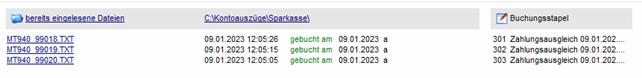 In dieser Dateiliste werden die MT940-Dateien aufgelistet, für die ein Buchungsstapel erstellt wurde.
