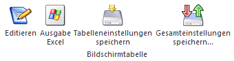 Im Gegensatz zu "Tabelleneinstellungen speichern" können mit "Gesamteinstellungen speichern" mehrere Tabellenaufbauten gespeichert und nach Wunsch geladen werden. Zusätzlich werden Sonderfunktionen der Tabelle (z.B. "Spalte gruppieren") ebenfalls bei der Speicherung bedacht.