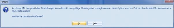 Mit den folgenden Einstellungen kann zurzeit noch keine gültige Clearingdatei erzeugt werden: