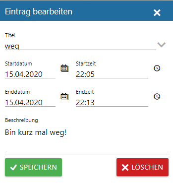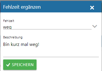 Mit dem "Fehlzeit beenden"-Button wird die Fehlzeit entsprechend beendet.