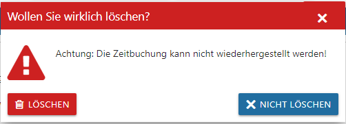 Im Menüpunkt "Zeiterfassung" können bestehende Zeiten bzw. Einträge gelöscht werden. Sobald in der Timeline auf einen Eintrag geklickt wird, geht ein eigenes Fenster auf, wo der Eintrag entsprechend gelöscht werden kann.