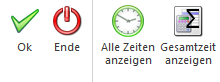 Mit diesen Button wird die gesamte Anwesenheitszeit angezeigt. Sollte es Unterbrechungen innerhalb eines Arbeitstages geben z.B.: wurde die Zeitart gewechselt oder der Arbeitstag zwischen durch beendet und wieder begonnen, so wird mit diesen Button die Gesamte Anwesenheitszeit gezählt.
