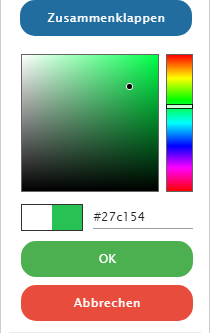 gewählt werden können. Das Designen eigener Farben ist über den Button