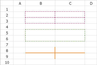 Mit Hilfe des Buttons "Zellen verbinden" Buttons können Zellen miteinander verbunden werden. Wird der linke Bereich des Buttons angewählt, so werden alle Zellen des markierten Bereichs zusammengeführt. Sind dort hingegen bereits verbundene Zellen enthalten, so wird die Verbindung entfernt.