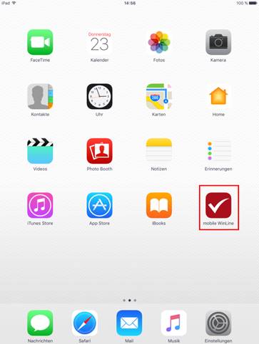 Nach der Installation wird diese als Icon am Bildschirm des mobilen Endgeräts - hier anhand von iOS - angezeigt.