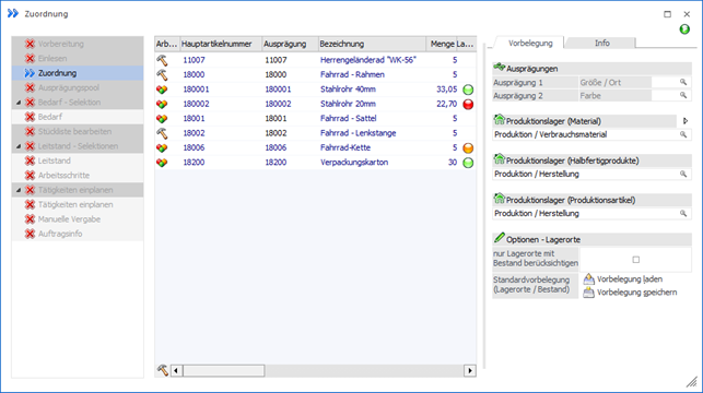 Im Register "Vorbelegung" der Zuordnung können diverse Vorgaben für das Ausprägen und die Zuweisung von Lagerorten getätigt werden.
