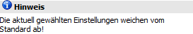 Weichen die aktuellen Einstellungen vom Standard ab, so wird hierauf wie folgt hingewiesen: