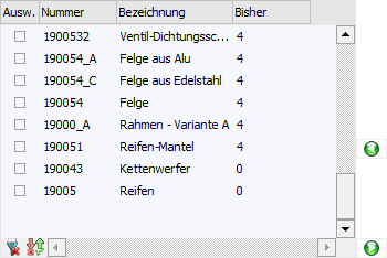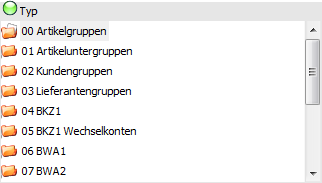 Je nach Typ wird an dieser Stelle eine Selektion (z.B. nach Artikelnummer oder nach Kontonummer) zur Verfügung gestellt. Die hier getroffene Eingrenzung wirkt sich auf das Ergebnis in der darunterliegenden Tabelle aus.