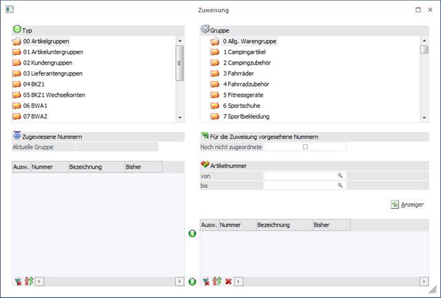 … können einfach Zuweisung stattfinden, z.B. Artikel erhalten neue Artikeluntergruppen oder Konten neue BKZ’s, ohne jeden Datensatz einzeln aufrufen zu müssen.