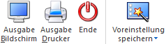 Mit Hilfe des Buttons "Ausgabe Bildschirm" oder der Taste F5 wird die Auswertung am Bildschirm ausgegeben.
